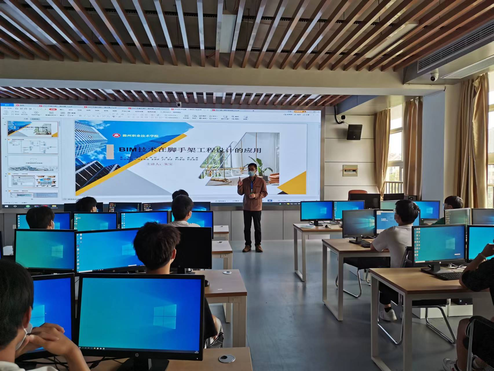 2022年4月27日下午15时,建筑工程学院朱宝副教授在建筑技术综合实训馆JG307教室,举办了题为“BIM技术在脚手架工程设计的应用”的讲座,建筑工程学院相关专业学生听取了讲座。