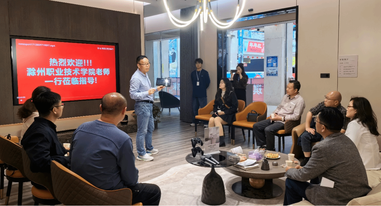 随后,孙静书记一行在滁州凸为智能科技有限公司总经理郭泽军的带领下参观了华为全屋智能授权体验店(滁州居然之家店),对全屋空间智能化进行深入体验。郭泽军总经理向大家展示了华为1+2+N理念下的全屋智能交互,指出智能化、数字化、个性化是未来装饰行业的发展方向,华为作为民族品牌更应引领家居产业结构升级同时向学校表达了共建实训基地,让学生接受智能家居设计培训的合作意愿。