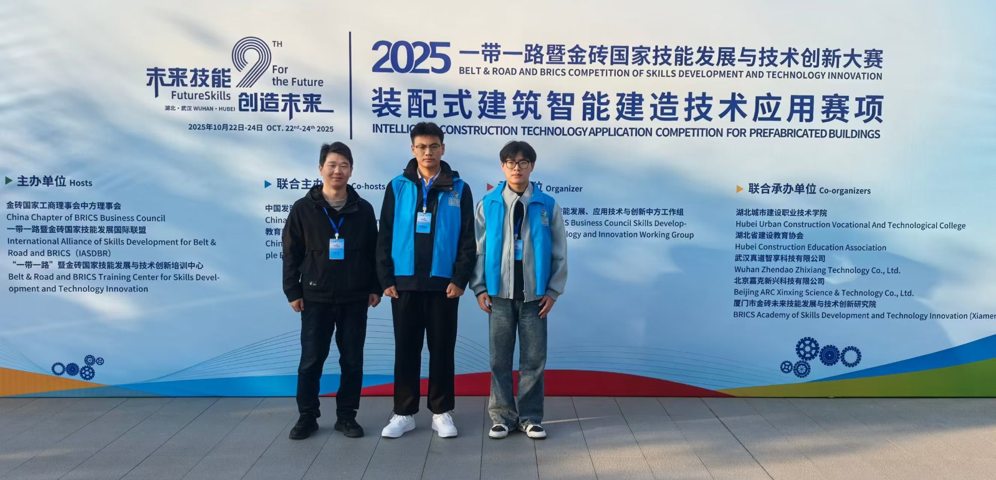 10月23日,2025“一带一路”暨金砖国家技能发展与技术创新大赛—装配式建筑智能建造技术应用赛项”全国总决赛在湖北城市建设职业技术学院圆满落幕,万象城官网建筑工程学院学生方俊清、杨晔参赛并在决赛中取得高职组三等奖成绩。从6月份区域选拔赛到10月份全国总决赛两位同学在余龙、徐邹影两位老师指导下认真备赛、求精求新,在赛项激烈角逐中展现了扎实的专业素养和出色的实践能力。