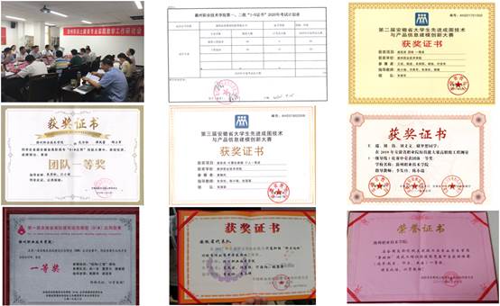 “十三五”期间,经过我院全体教职工的共同努力,以大滁城建设为依托,创建了“依托行业,理实交替”的人才培养模式;依据市场调查的数据,以岗位设置、项目引导,任务驱动为目标,对课程在横向和纵向进行引导,打破原有的课程体系,构建了专业项目化的课程体系;此外龙头专业——建筑工程技术专业的专业改革成果应用到其他专业,促进工程监理、道路与桥梁工程技术、物业管理等专业。为经过近五年的建设,我院的专业建设成效显著:建筑工程技术列入国家级高水平骨干专业建设计划,建筑工程实训中心获得省级示范实训中心,成为全国首批1+X试点单位(建筑信息模型和建筑工程识图技能两个X证书)同时,列入国家建筑工程识图技能等级证书考核站点。指导学生参加各项技能大赛,获得国家级三等奖三项、省级一等奖近十项、省级二等奖、三等奖若干项。