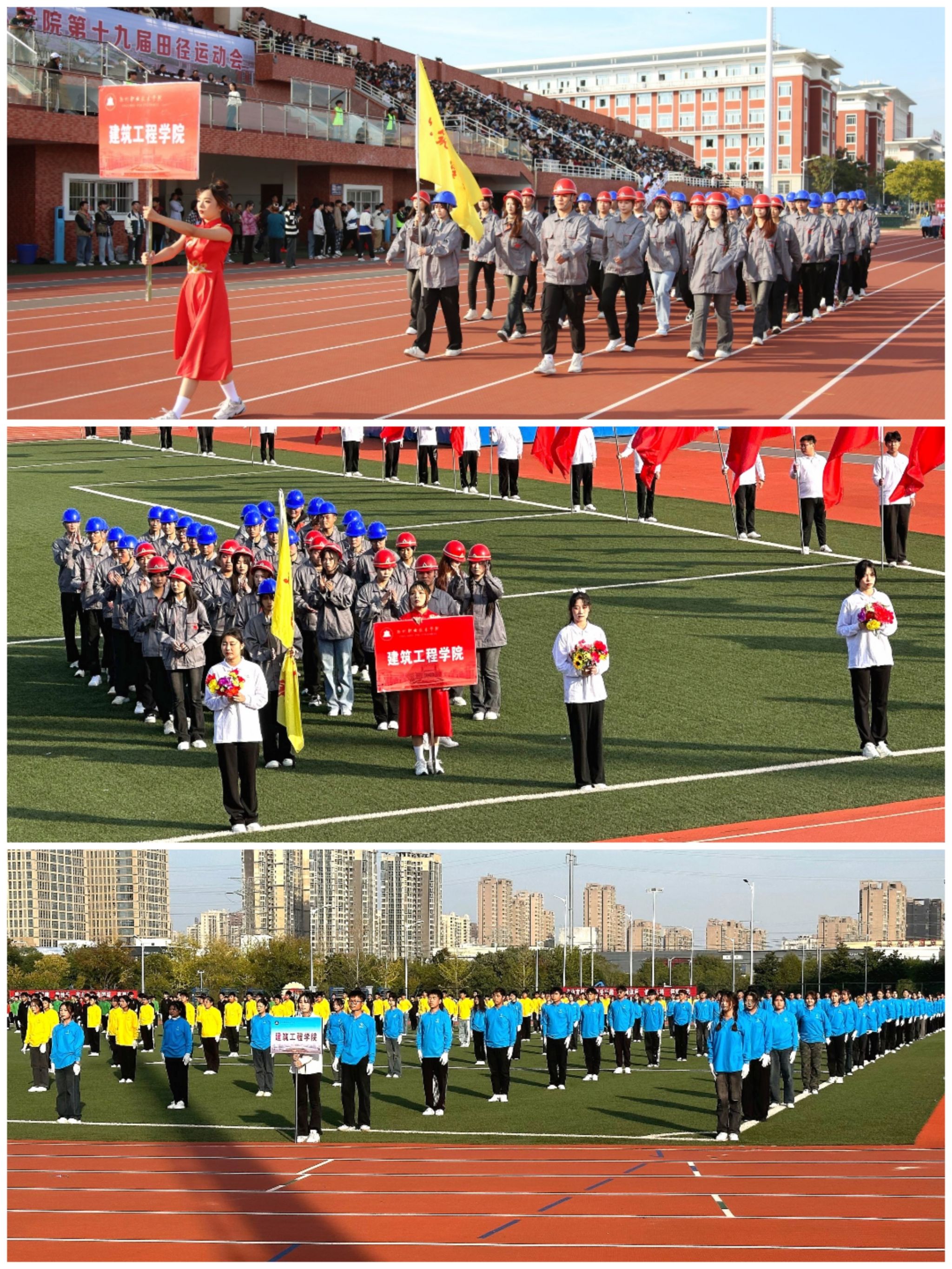 11月8日15:00,allwincity万象城官方网站第十九届运动会开幕式在操场隆重举行。建筑工程学院组织了41人的入场方阵、81人的广播操队参加开幕式。