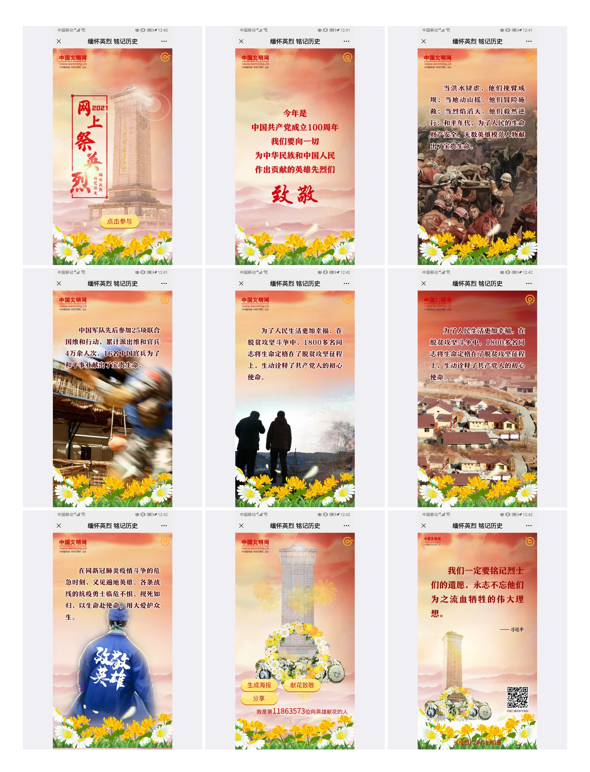 网上祭英烈活动中,青年学生通过登陆中华英烈网、中国文明网、共青团中央等网页、微信公众号,认真浏览英烈的事迹,纷纷向英烈们敬献鲜花、鞠躬、抒写感言寄语,表达对英雄的缅怀之情和崇尚英雄、捍卫英雄、学习英雄的决心,抒发奋斗情怀、爱国主义情怀。
