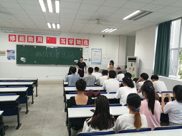 讲究诚信是中华民族的传统美德,建筑工程学院一直以来注重对学生的诚信教育。通过此次诚信宣誓活动,引导学生用正确的行为规范来对待学习和生活,让学生时刻提醒自己诚信立身、诚信考试、诚信处事、诚信待人的重要性,做一个对自己负责,对社会、对人民、对国家有益的人。