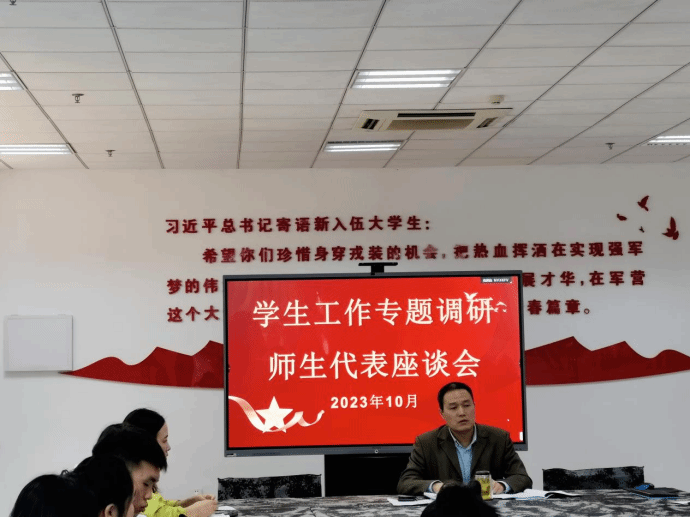 10月10日下午,为深入贯彻落实《allwincity万象城官方网站贯彻落实省教育厅大兴调查研究决策部署实施方案》要求,学生工作处在征兵工作站组织召开学生工作专题调研师生代表座谈会。各教学院部辅导员和学生代表参加调研座谈。学生工作处副处长顾宏才主持座谈会。