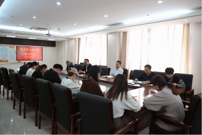 10月13日下午,机关第七党支部在综合楼704会议室召开学习贯彻习近平新时代中国特色社会主义思想主题教育党员会议,机关第七党支部党员参加会议,校党委副书记杨家庆,校党委委员、工会主席李平权以党员身份参加,会议由机关第七党支部书记顾宏才主持。