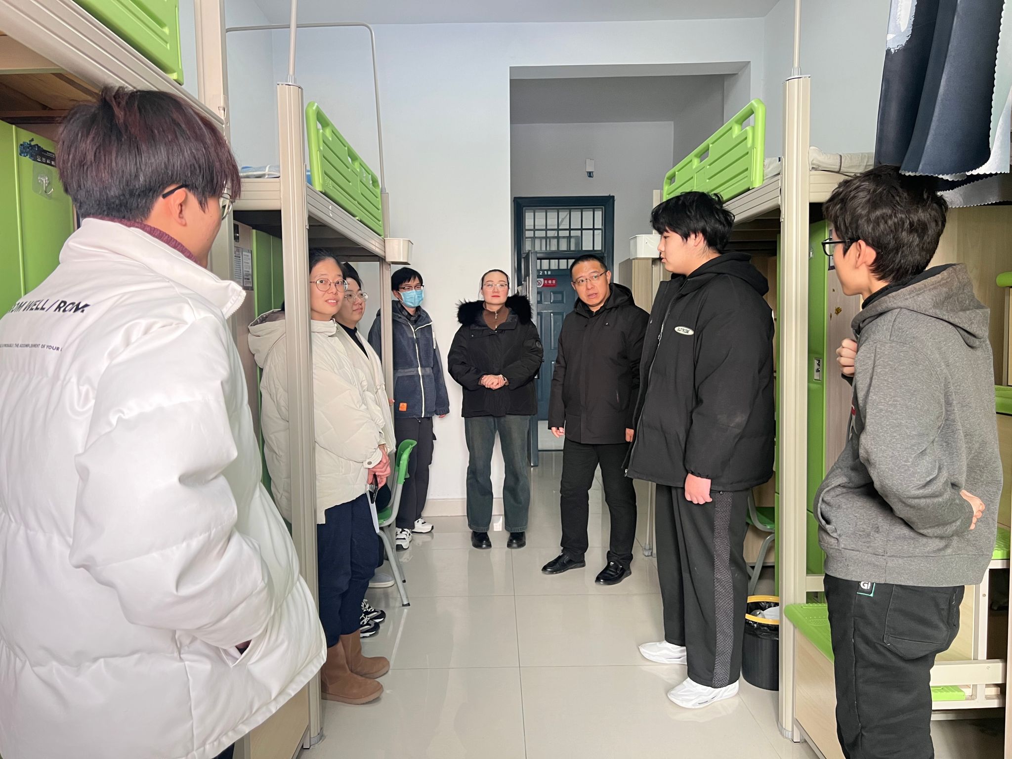 在调研过程中,李超一行仔细察看了学生宿舍的宿舍卫生、安全用电等情况,在与同学们亲切谈心中,详细询问他们的家庭近况、学业成绩、课余生活,同时听取他们对学校教育教学、学生管理、后勤保障、安全稳定等方面的意见。临近期末,希望同学们在加强体育锻炼的同时,合理规划好时间,全身心投入到期末课程学习中。鼓励大一学生和专升本学生多与老师交流,制定学习计划,打牢专业基础,发扬艰苦奋斗精神;在毕业班学生宿舍,鼓励大家要明确自己的就业方向,及时关注网站和招聘简章,以积极的心态和和饱满的热情投入到实习和就业工作中。李超肯定了学生党员志愿服务台和学生党员宿舍发挥的模范带头作用,既是荣誉更是担当和责任,要以实实在在的行动和积极向上的形象,以朋辈榜样助力全体学生共同成长。