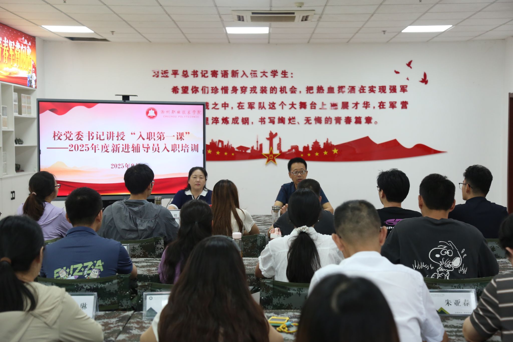 入职培训是学校加强辅导员队伍建设、重视辅导员全过程培养的重要举措。据悉,“入职第一课”后,本次培训还围绕学生管理、资助服务、心理健康教育、国防教育、安全教育等学生工作实务进行了培训交流。下阶段,学校将进一步拓展培训学习形式,深入推进辅导员队伍职业化、专业化、专家化建设发展。