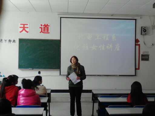 2013年3月21日中午,在5113教室,由机电系举办、各系部学生代表积极参与的“礼仪知识讲座”圆满成功。讲座由院督导室葛桂云老师主讲。