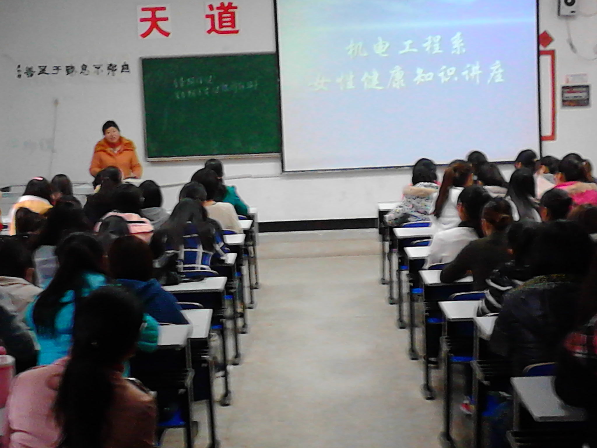 3月22日中午,在5113教室,机电系承办的第五届女生节女性讲堂——健康知识讲座圆满结束。本次讲座邀请第一人民医院银花分院杨主任主讲,参加人员有陈琴老师和来自各系部的女同学。