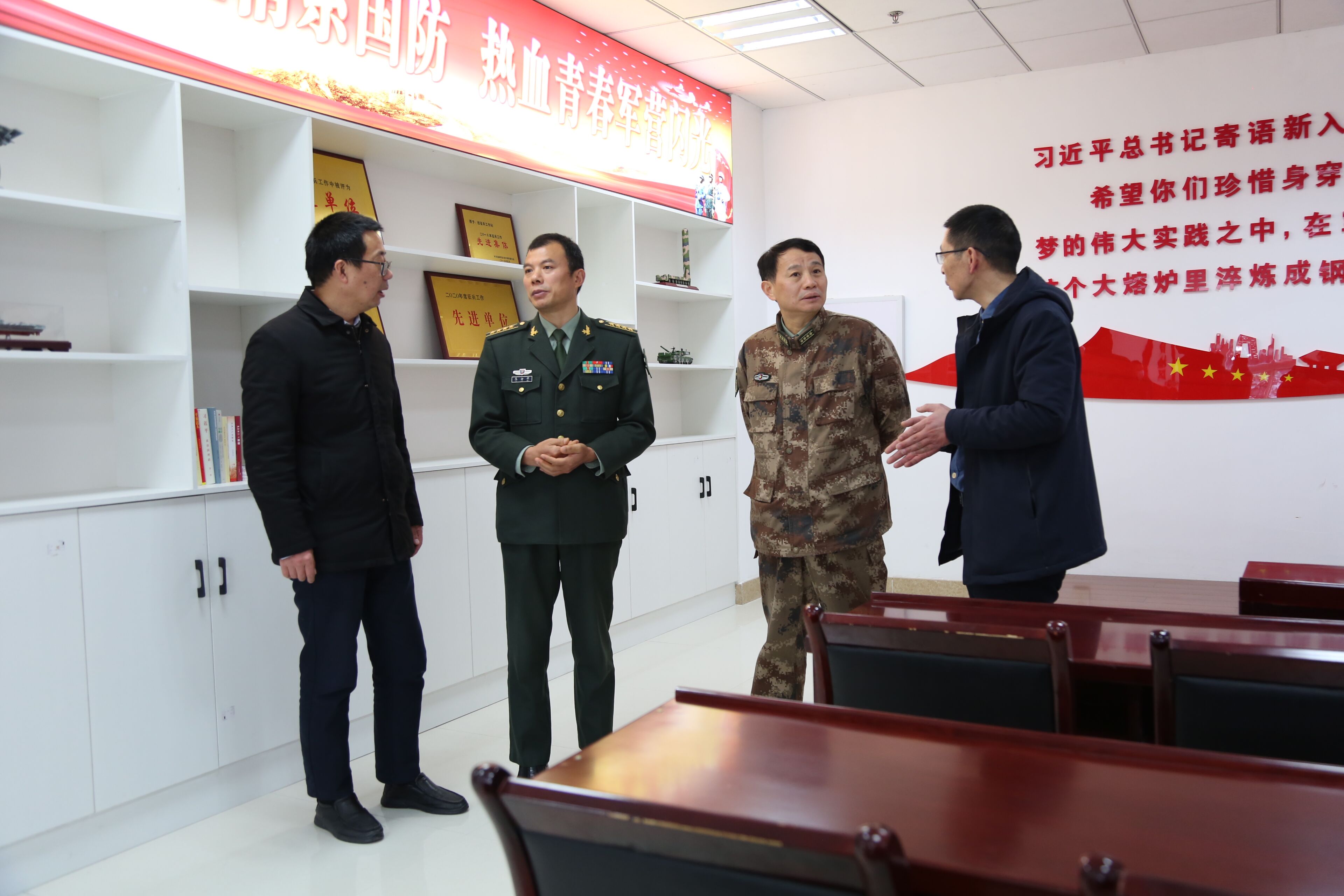 在现场,李平权代表学校党委、行政向吴金贵一行表示诚挚欢迎,并与来访组进行了细致交流。校征兵工作站工作人员向来访组汇报了学校“两站”建设及运行的基本情况、学校征兵工作的经验做法与工作成效等。
