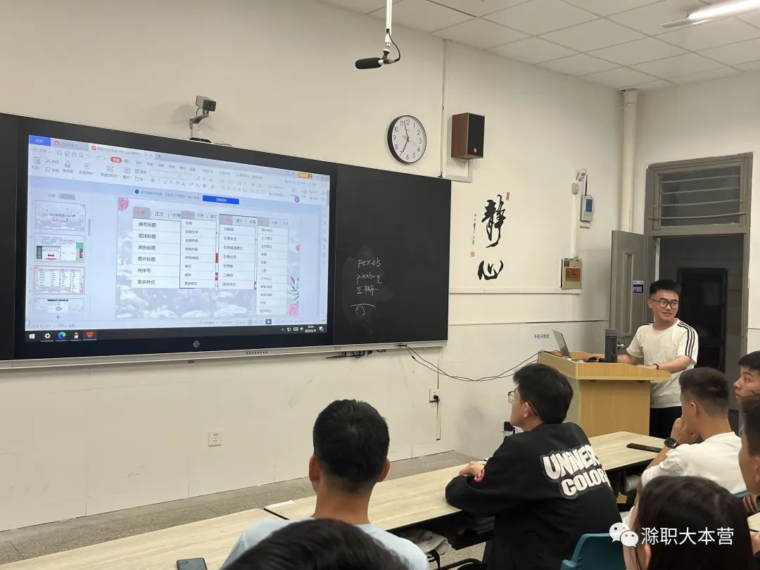 为了帮助同学们掌握更多实用的社会技能,5月13日晚18:00,本科教育党支部在1304教室举办了“微信公众号编辑技能”分享会。本科教育党支部书记薛天飞主持并参加学习,22级土木、园林、电气、会计等班级均有同学到会听讲。此次分享会的主讲人为电气221班的孙永恩同学,他从入学至今,一直负责滁职大本营的后台工作。