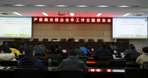 12月13日下午,学校在502报告厅举办产教融合校企合作工作主题报告会,常州工程职业技术学院教授、产教融合办公室主任、绿色技术研究所所长李树白博士应邀来校做报告。党委副书记、校长许雪峰,党委委员、纪委书记孙静,党委委员、宣传统战部部长王冬出席,党委委员、副校长苏有良主持。各教学院部行政正副职、教学秘书、系主任和专业负责人以及有关部门正副职八十余名同志参加。