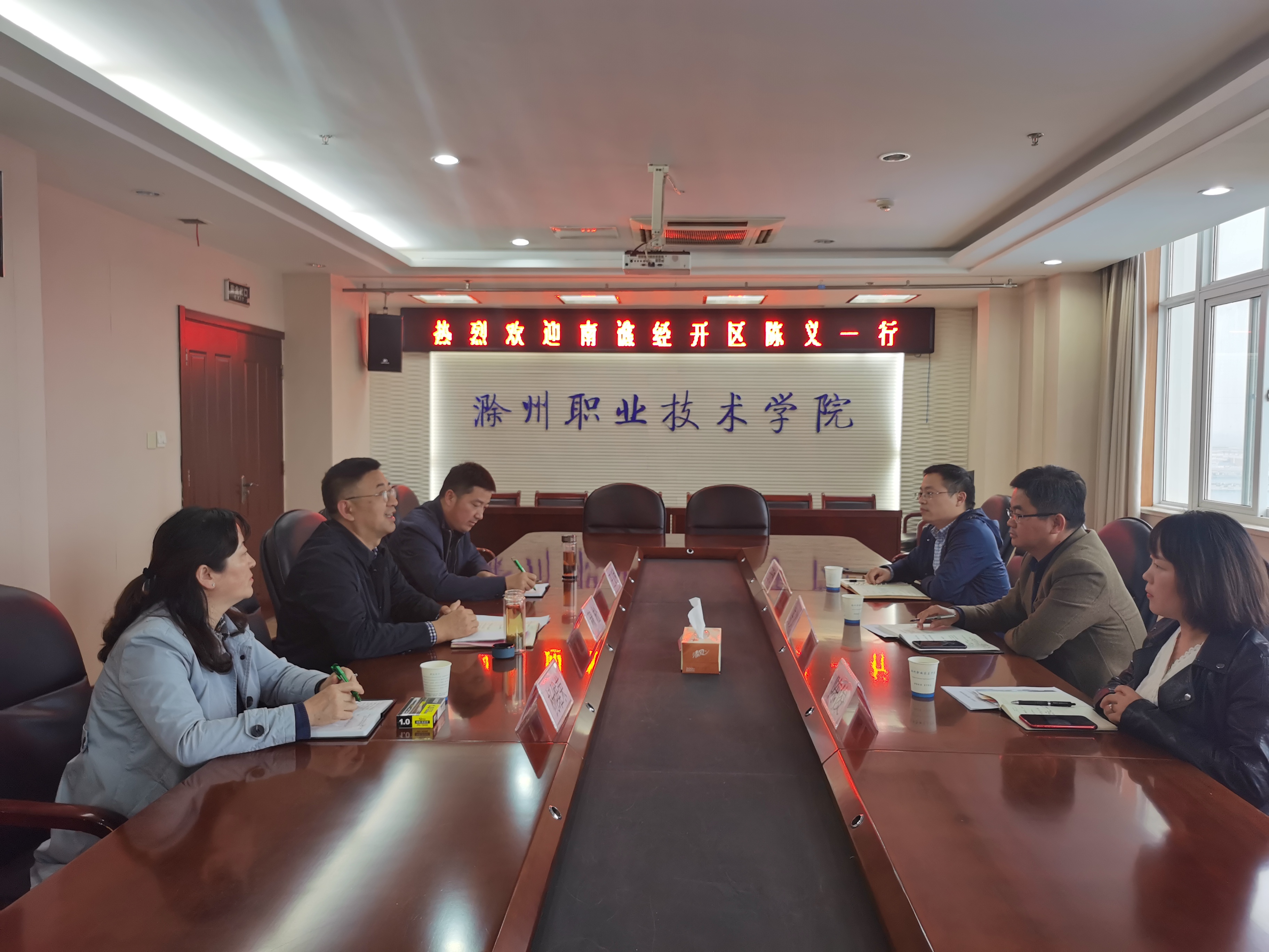 陈义一行对学校一直以来对南谯区企业发展提供技能型人才和管理人才表示感谢,并希望学校能与企业建立长期的合作关系。