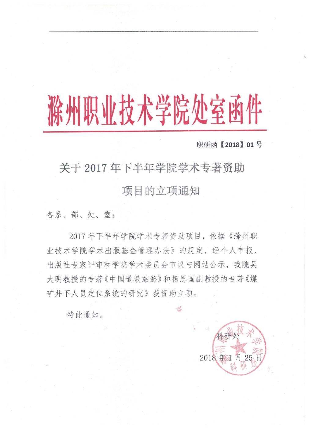 关于学院2017年下半年学术专著资助项目立项结果的通知