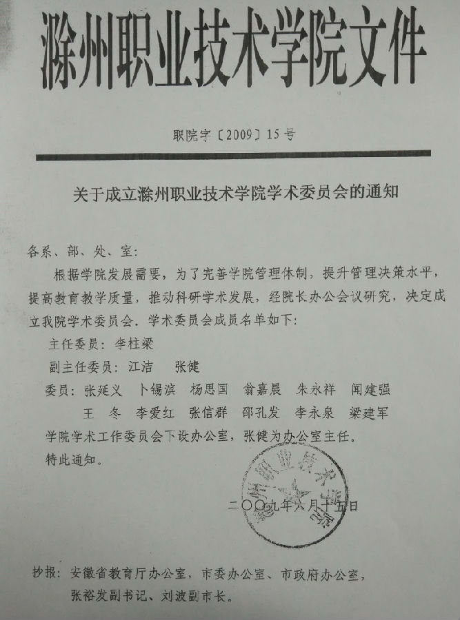 关于成立allwincity万象城官方网站(第一届)学术委员会的通知-职院字【2015】15号