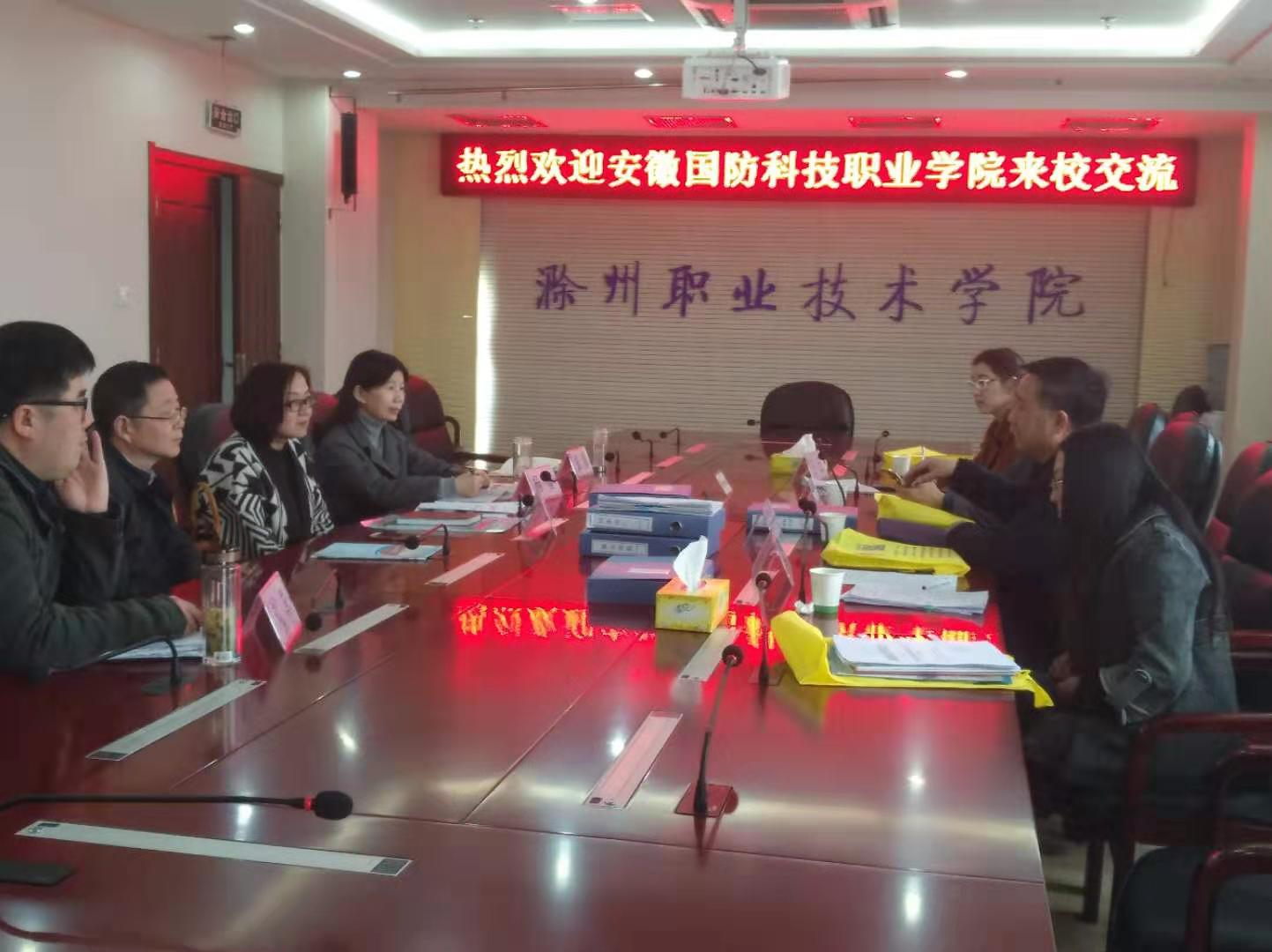 3月18日下午,安徽国防科技职业学院职教研究所所长陈小林、教务处(科研处)王志宏处长、副处长白斌丽与科研干事王云一行4人来万象城官网调研学习。交流座谈会在综合楼902会议室举行,万象城官网职研所副所长李爱红、科技成果转化中心主任刘青等4名科研处工作人员参加了会议。