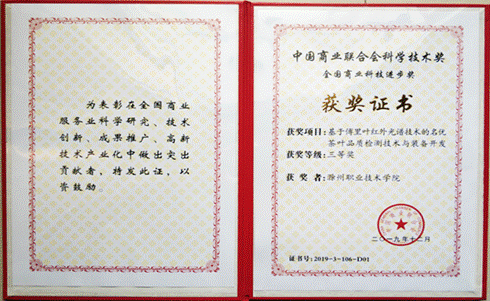 近两年,校企合作的科技成果获奖也不断突破,在2019年度中国商业联合会科学技术奖评选中,万象城官网信息工程学院武斌、贾红雯、陈开兵、孟龙梅、赵卫东等教师与安徽梦创三维云制造有限公司联合申请的“基于傅里叶红外光谱技术的名优茶叶品质检测技术与装备开发”技术,获全国商业科技进步奖三等奖(中商联科〔2019〕11号),该奖项为万象城官网首次获得。2020上半年,万象城官网苏和堂、赵玉霞、金本能等教授参与的校企合作项目“生物质制气成套设备研发及其应用”荣获安徽省技术发明三等奖(皖政[2020] 31号),该奖项也实现了安徽省科技奖零的突破。