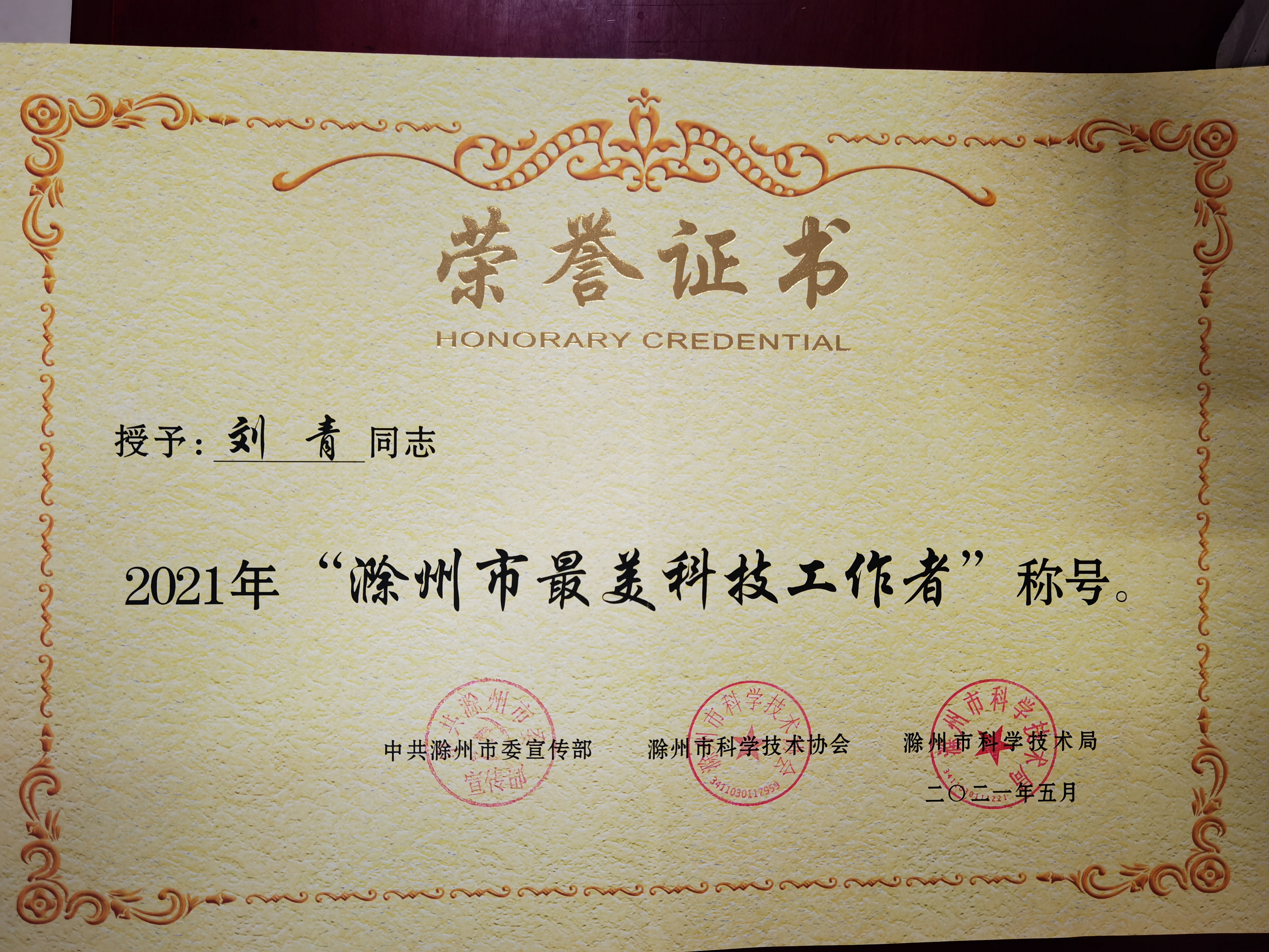 由中共滁州市委宣传部、滁州市科协和滁州市科技局组织的2021年度“滁州市最美科技工作者”评审结果近日揭晓,万象城官网信息工程学院刘青老师获评为2021年度“滁州市最美科技工作者。