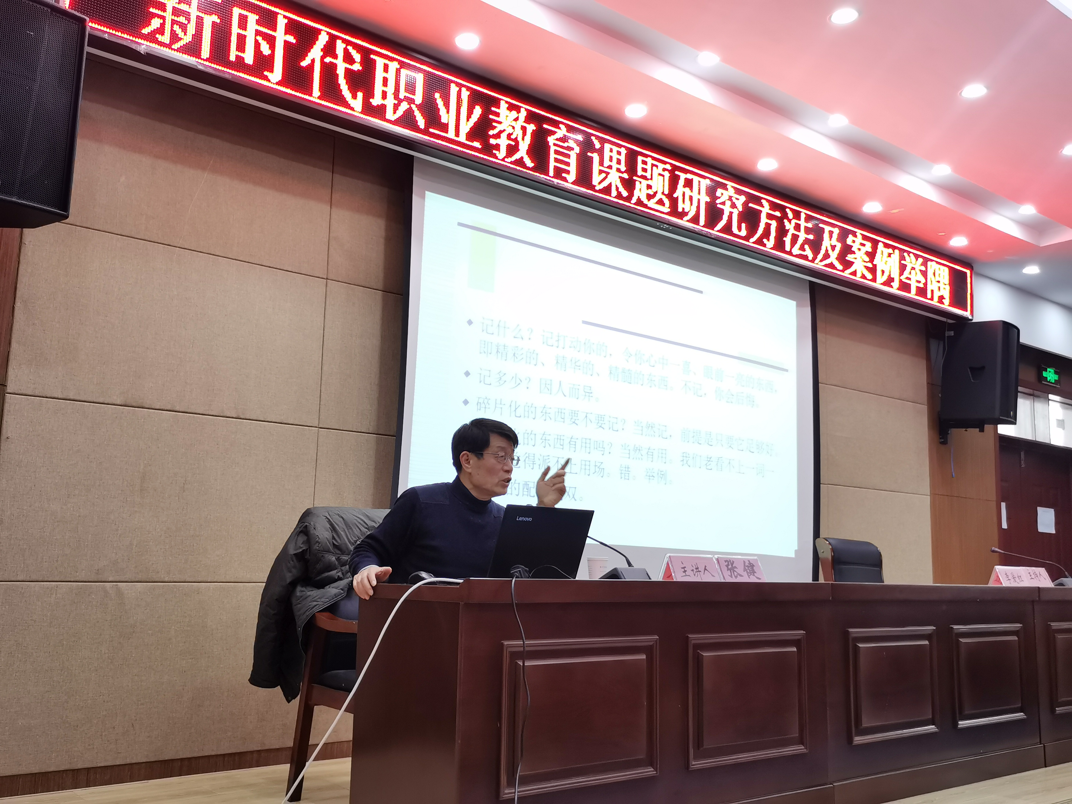 1月14号上午9点,教育部职教中心所特聘研究员、allwincity万象城官方网站校职研所所长张健教授受邀在南阶205报告厅举办了一场题为“新时代职业教育课题研究方法及案例举隅”的讲座,由院科技处李爱红处长主持。全校讲师及以下职称的青年教师参加了此次讲座。