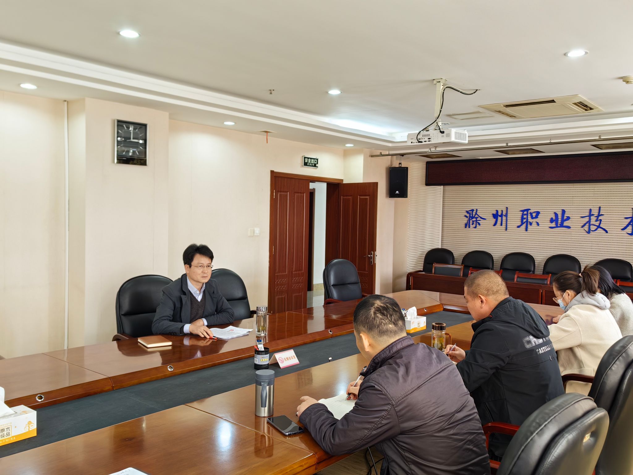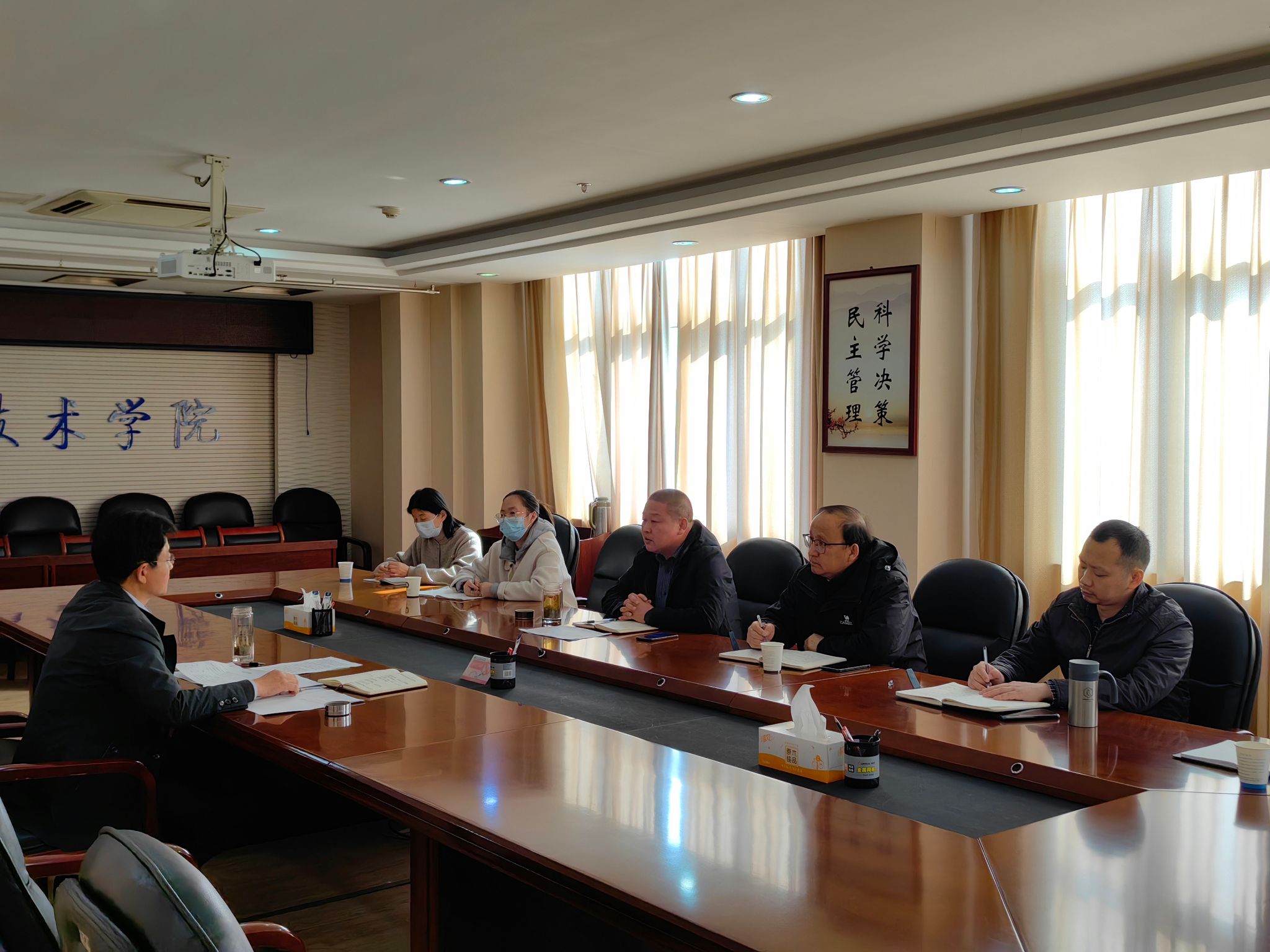 会上,科技处处长肖陆飞首先向苏有良介绍了处室目前岗位职责分工概况,随后处室人员分别从横纵向项目管理、学报编校出版、职业教育研究、科技成果转化与知识产权保护等方面,依次汇报了近期各项重点工作的完成情况以及工作开展过程中所面临的问题。