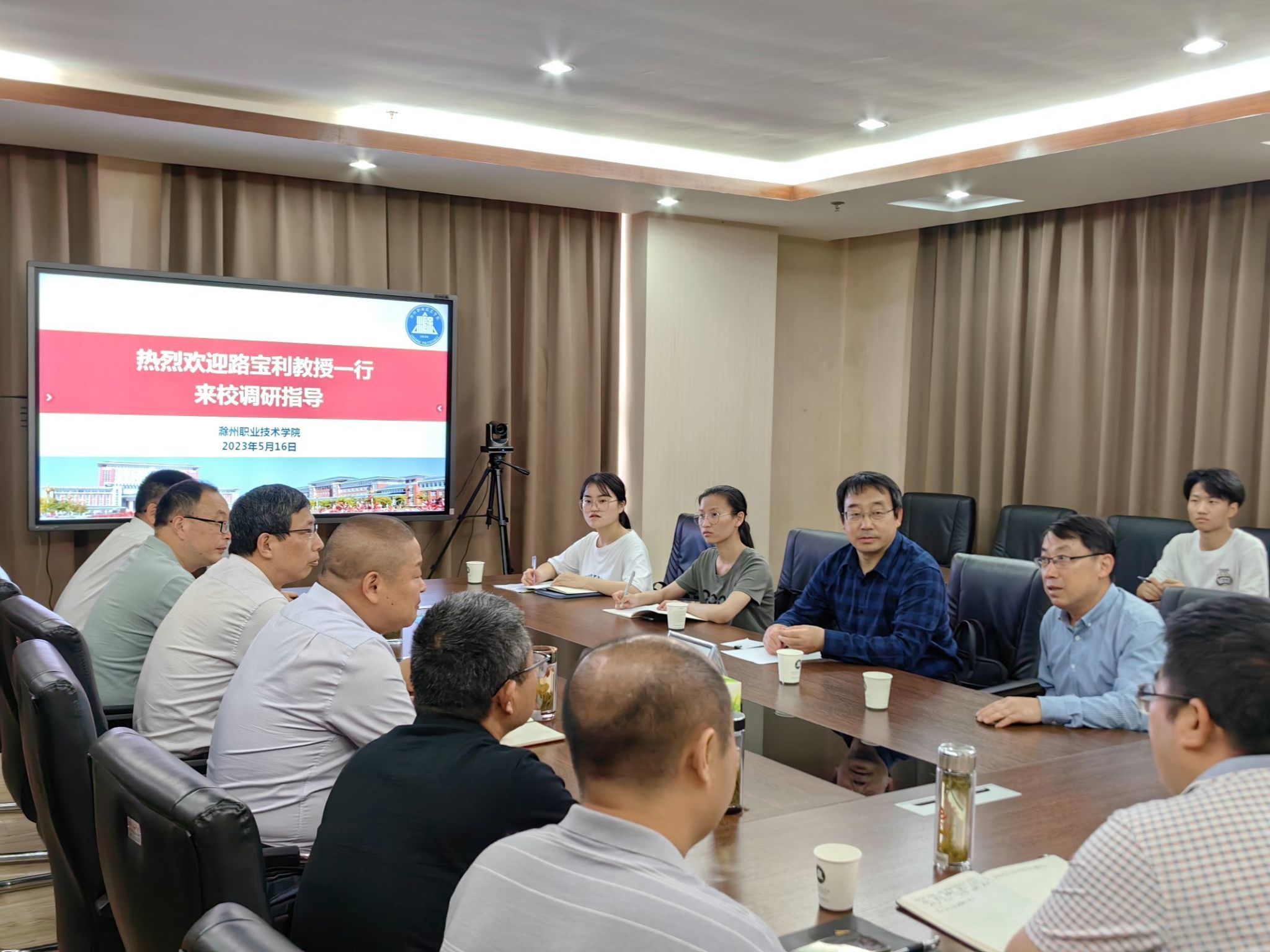 5月16日下午,安徽师范大学教育科学学院博士生导师路宝利教授率课题组成员来万象城官网调研职业教育工作。滁州市教体局职业与成人教育科蒋新华科长陪同调研,安徽滁州职教集团秘书处、科技处(职教研究所)相关工作人员、部分教学院部负责人和教师代表参加调研座谈会。科技处处长(所长)肖陆飞主持座谈。