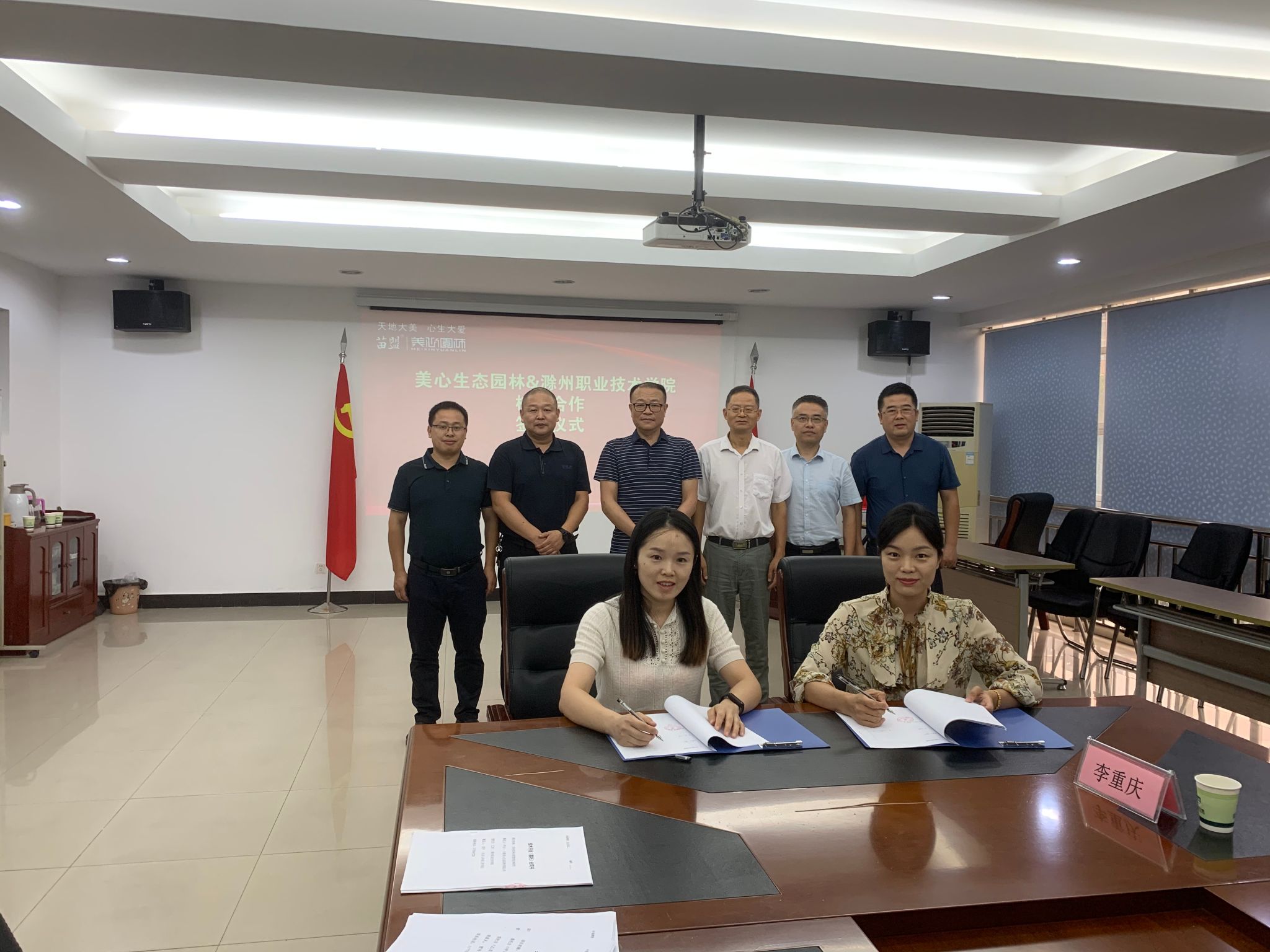 9月19日下午,学校与安徽美心生态园林有限公司校企合作签约仪式在企业会议室举行,安徽美心生态园林有限公司总经理徐之田、副总经理凡勇,学校科技处处长肖陆飞,食品与环境工程学院院长梁建军、园林系主任江生泉、项目主持人贾丹及相关人员参加了签约仪式。