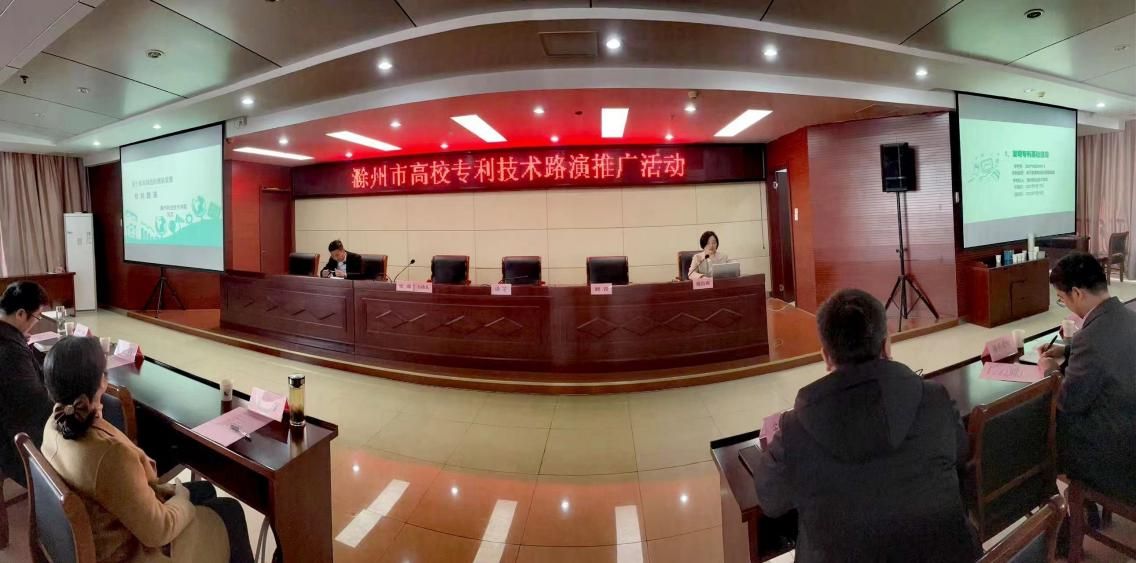 本次活动是滁州市高校专利技术路演第一场推广活动。滁州市市场监管局二级调研员梁芳出席活动并讲话,安徽科技学院、滁州学院、各县市区市场监督管理局、明光市相关科技型企业、知识产权代理服务机构、技术经纪人等人员参加了活动。学校科技处组织并参加了活动。